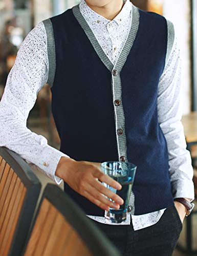 TopTie Men's Sweater Cardigan Vest Slim Fit Stylish Button Down Knitted 3