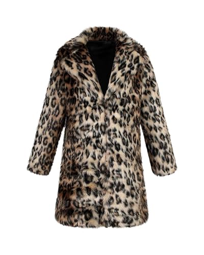 UMREN Mens Warm Leopard Faux Fur Coats Jacket Long Luxury Overwear Parka Cardigans 6