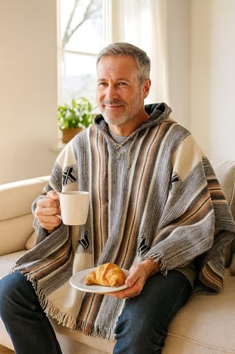 More information about Gamboa Alpaca Wool Poncho Men Panchos Mexican with Hood Adult Cowboy and Western Hippie Poncho para Hombre