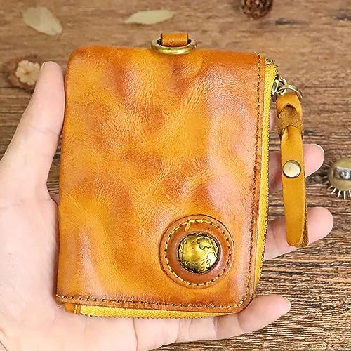 HOT ! 1 Pcs Medieval Pouch Mini Genuine Leather Coin Pouch-Genuine Cowhide Handcrafted Keychain Coin Organizer Zipper Coin Pouch (With Card Slot) Credit Card Holder Keychain Coin Purse (Yellow)