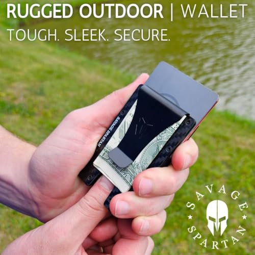 HOT ! SAVAGE SPARTAN-Rugged Minimalist Credit Card Holder Carbon Fiber Slim Tactical Front Pocket Wallet for Men with Metal Money Clip
