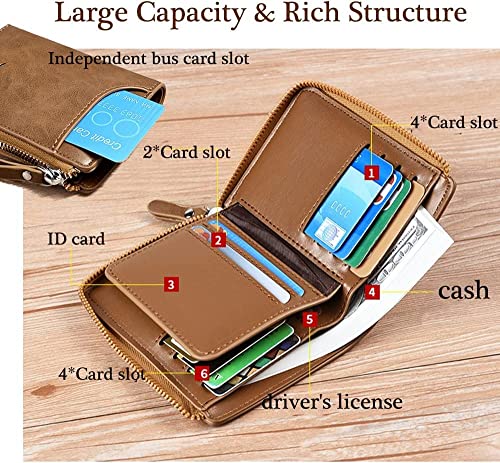 2023 New Multi-functional RFID Blocking Waterproof Durable PU Leather Wallet, Soft Slim Genuine Leather RFID Blocking Wallet,Large Capacity Zipper Wallets for Men Holds 1-14 Cards (C-brown) 6