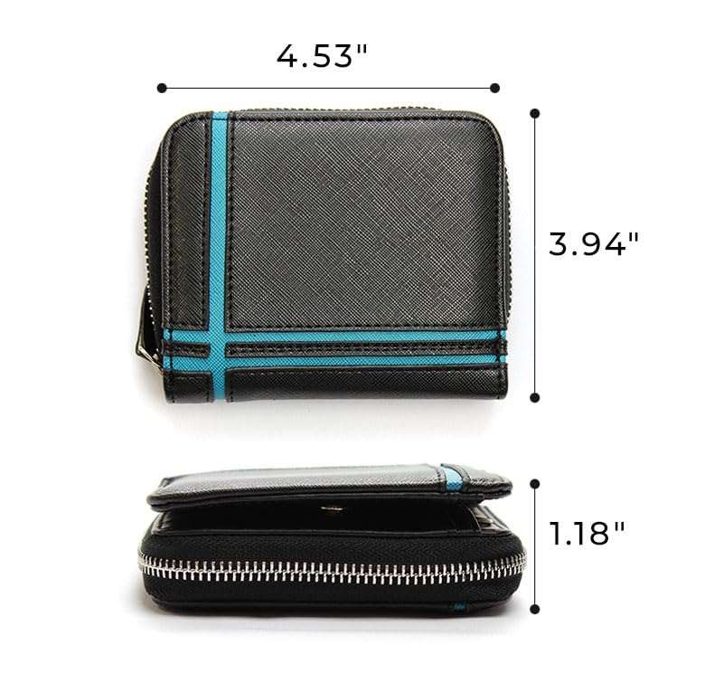 More information about Daylight DL-1042 Bi-fold Wallet for Kids, Junior High & High School Students, PU Leather, Compact Round Zipper, W-Line Design, Durable & Lightweight Men's Wallet (Navy/White)