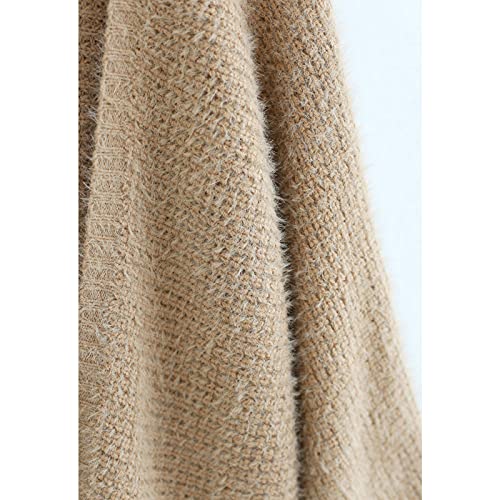 CHICWISH Women Fuzzy Open Front Waffle Knit Cardigan Long Lantern Sleeve Oversize Classy Cozy Cardigan Sweater Tan/Pink/Blue 6