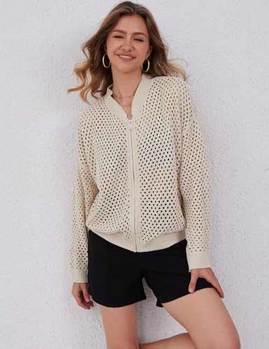 • COMFY MATERIALL: The zip up crochet cardigan is made of knit fabric, softness and comfort, hollow out design is breathable and lightweight, making it suitable for spring and fall wear, as well as cool summer evenings.