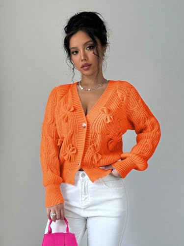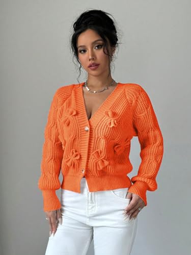 HOT ! Women's Bow Chunky Knit Cardigan Sweaters Open Front Cozy Long Sleeve Button Up Cardigans for Winter 2025