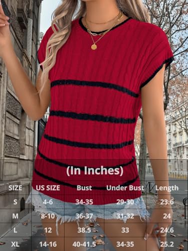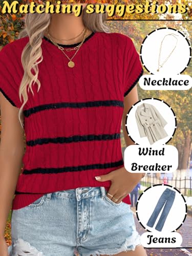 HOT ! Women Summer Sleeveless Sweater Vest, Crew Neck Striped Cap Sleeve Cable Knit Tank Tops, Work Casual Outfit Going Out