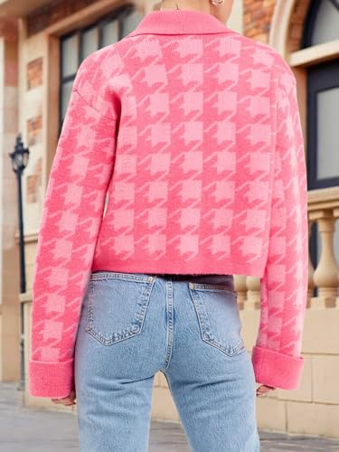 • Soft And Warm Fabric: Made from a premium blend of acrylic, nylon, and PBT, this pink houndstooth knit cardigan sweater for women delivers a soft touch and cozy warmth, making this cropped knit sweater jacket for women a comfortable and durable layering piece
