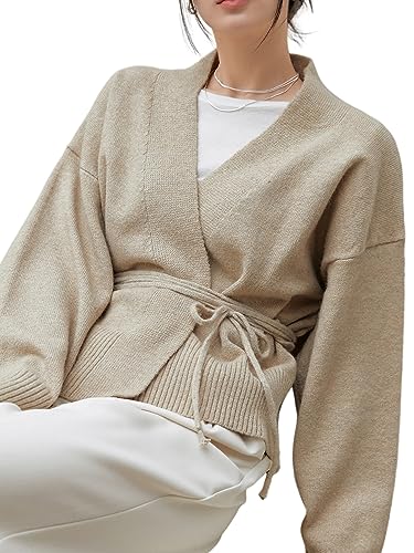• Features: wrap, v neck, long sleeve, tie front, casual cardigan