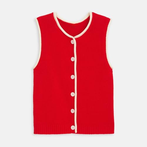• Features: Womens knit vest, sleeveless, scoop neck, button front closures, contrast at neck, arm holes and button placket, ribbed at hem, provide you with a fashionable look