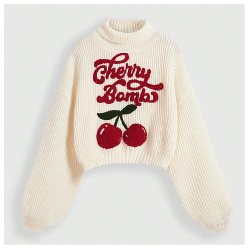 • Features: Womens sweater features a turtleneck, long sleeve, cherry print, knitted, loose, drop shoulder