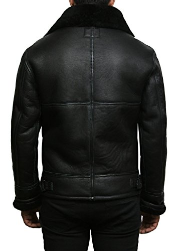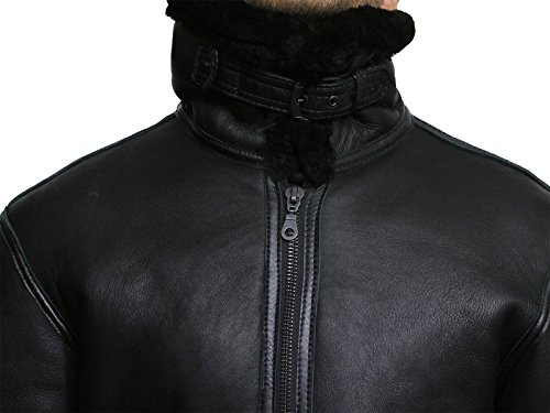 Brandslock Mens Real Shearling Sheepskin Leather Flying Aviator Bomber Jacket 6