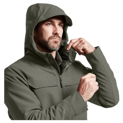 • DURABLE FINISH - The finish of this SITKA Gear Grindstone Jacket is able to withstand light precipitation. Rigid, adjustable hood with low-profile cohesive welded cord locks protects you from the elements