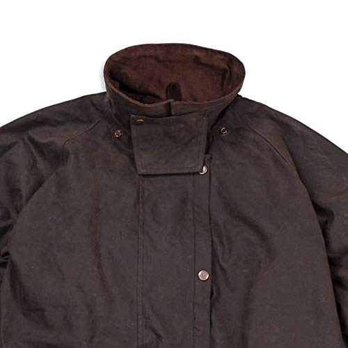 • Description|Sizing|Fabric Care| Built for the same purpose as the long drovers coat pure function and features much the same only in a 3/4 jacket length. Corduroy collar stencil printed full cotton lining with two internal security pockets.. Double snap down storm plackets cover the front snap closure. Draw corded at the waist full shoulder cape adjuster sleeve tabs and bottom front flapped patch pockets that cover hand warmer pockets. Double back vents for riding everything. The button-in liner facility accepts any of our optional vest or jacket liners. | Size Guide: XS-5XL |Outer: MicroWax Oilcloth 100% CottonLining: 100% CottonTrim: Genuine Leather Understanding MicroWax Products made using our MicroWax cloth are as tough as they come - water-repellent abrasion-resistant breathable. The breathability arises from the fabric's crystalline structure which varies and aligns with an increase of body heat thereby allowing sweat in the form of water vapour to escape.To clean your MicroWax oilcloth garment simply wipe or hose down with tepid water then hang to dry in a cool well ventilated area out of direct sunlight. Do NOT use hot water machine wash or dry clean. Don't use any soap or detergents and don't force dry in front of any heat source. Oilcloth garments should be reproofed every 2-3 years depending on wear using Kakadu's MicroWax Reproofing Cream.