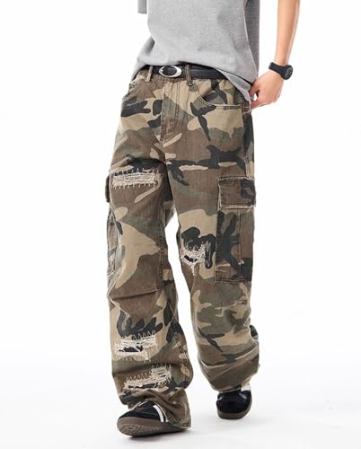 • Features: Camouflage ripped jeans for men feature with classic 5 pockets and 2 flap pockets for you to secure your small essentials, straight wide leg, ripped distressed details, loose fitting, streetwear style hip hop jeans for men baggy