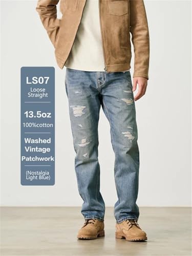 Men Loose Straight Vintage Patchwork Jeans Street Style Plus Size Denim Trousers Light Blue 31 7