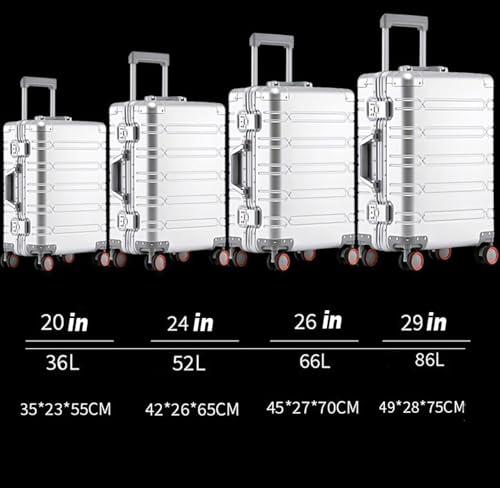 Aluminum frame suitcase with universal wheels, silver suitcase, TSA customs lock, hard shell travel suitcas,3,24in 6
