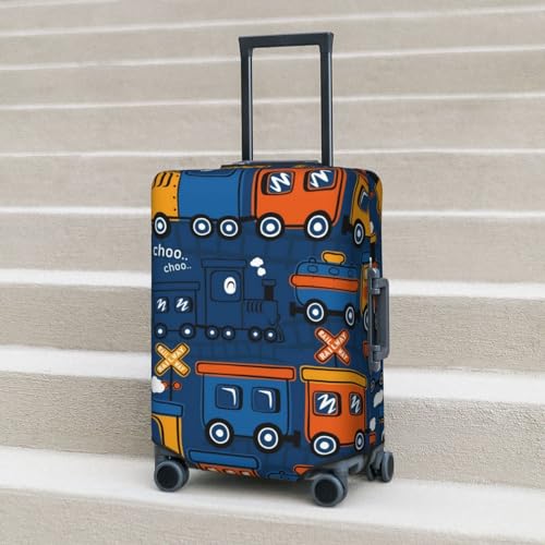 HOT ! Funny Steam Train Luggage Cover Washable Elasticated Luggage Covers for Suitcase tsa Approved Stylish Dust and Scratch Resistant Luggage Case Protector for Kids and Adults -