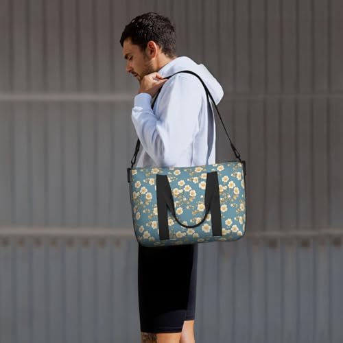 More information about Travel Duffle Bags For Women Men - Classy Blossom White Print Personal Item Weekender Overnight Gym Carry On Airport Tote Bag With Strap For Yoga, Travel, Business Trips