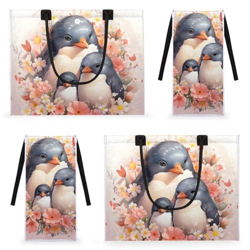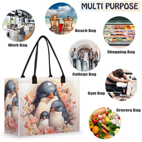 HOT ! Penguin Family Flowers Tote Bag for Women Large Beach Bag Reusable Tote Bags for Work Travel Beach Shopping
