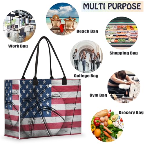 HOT ! America Flag Basketball Tote Bag for Women Large Beach Bag Reusable Tote Bags for Work Travel Beach Shopping