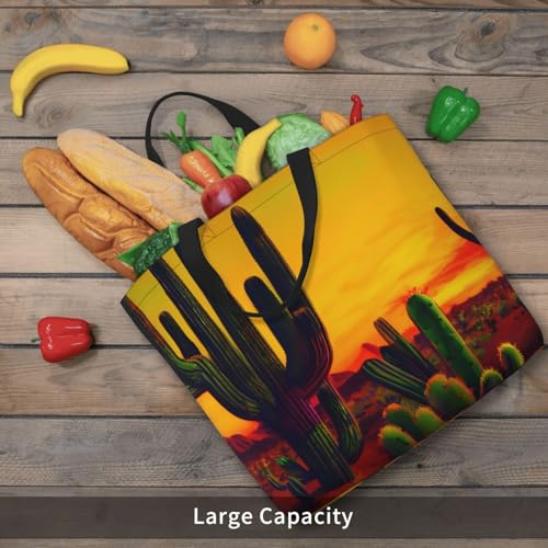 Cactus in Desert Print Women's Portable Tote Bag - Large Shopper for Beach,Travel,Gym | Summer Handbag 4