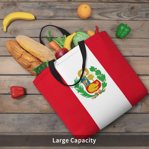HOT ! Flag Of Peru Print Tote Bags, Large Capacity Zipper Shoulder Bag, For Shopping, Work, Daily
