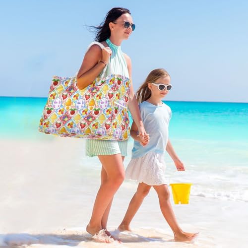 Colorful Fruits Beach Bag & Travel Tote Bag Large Sandproof with Zipper Closure, Wet Pouch for Swim Gym Travel, Lightweight Foldable Outdoor Bag 1