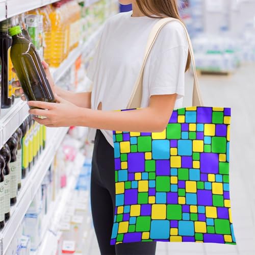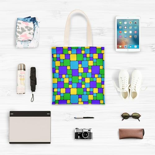 HOT ! Colorful Squares Blue Green Small canvas tote bag for women with handles Reusable Tote Bag Canvas Totes for Daily Use Bolsa de lona