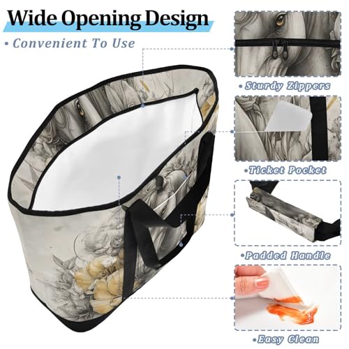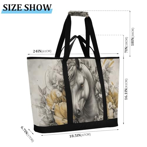 HOT ! Large Insulated Reusable Tote Bag Horse Floral for Grocery Shopping for Women Men, Cooler Bag with Zippered Top & Handles for Travel Beach Picnic