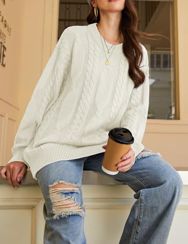 YUCOLEN Pullover Sweaters for Women Chunky Cable Knit Crewneck Loose Fit Long Sleeve Vintage Fall Sweater Tops 5