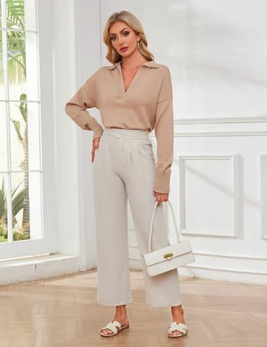 OLAPTA Women Knitted Lapel Collar Crop Sweater Polo V Neck Long Sleeve Loose Fit Casual Comfy Pullover Sweater Jumper Tops 4