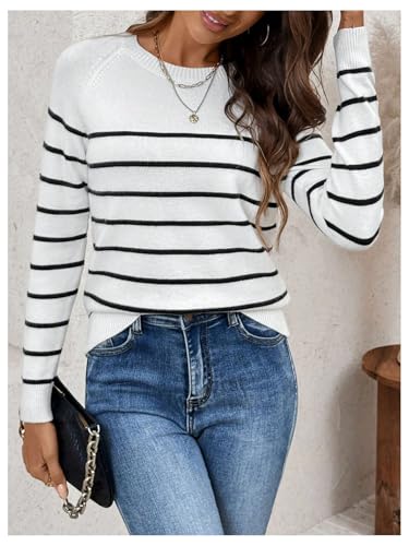 SOLY HUX Fall Sweaters for Women Striped Crew Neck Long Sleeve Pullover Sweater Knit Tops 6