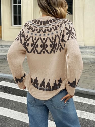 Saodimallsu Womens Fair Isle Sweater Vintage Crew Neck Long Sleeve Chunky Knit Fall Winter Pullover Sweaters Tops 1