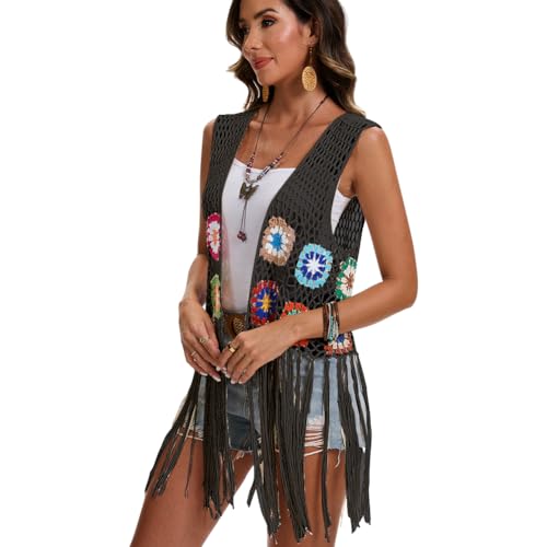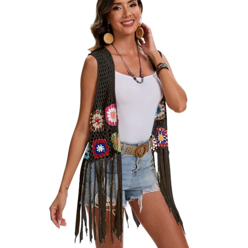 • Design: This vest is hand woven, sleeveless, lightweight and breathable, with an open front for easy on and off. The tassel design at the hem is the finishing touch, adding a touch of agility and elegance to the overall look. Bohemian style vests are known for their freedom, romance, and rich colors. This vest embodies the essence of Bohemian style through the floral crochet cardigan design