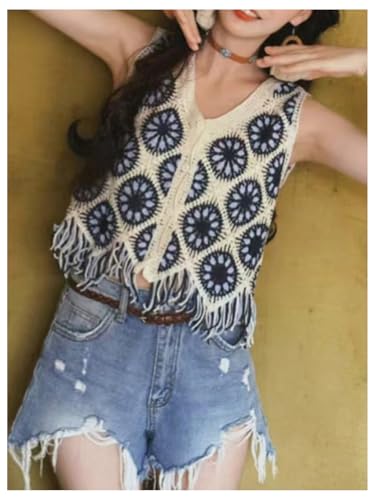 More information about GORGLITTER Women's Bohemian Floral Sweater Vest Sleeveless Button Up V Neck Raw Hem Western Knit Tops 2025