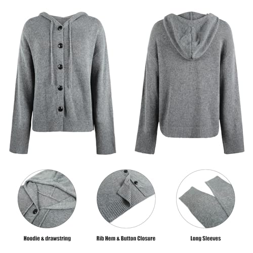 Blostirno Women's Casual Hooded Cardigan Sweaters V Neck Button Down Long Sleeve Kint Cardigans Coat 5