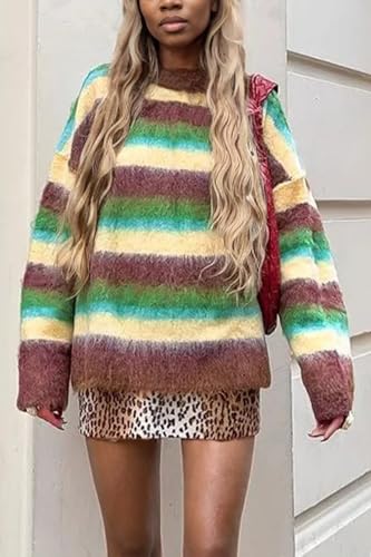 More information about Vakkest Women's Striped Pullover Sweater Long Sleeve Crewneck Cute Color Block Fall Cozy Fuzzy Knitted Loose Tops