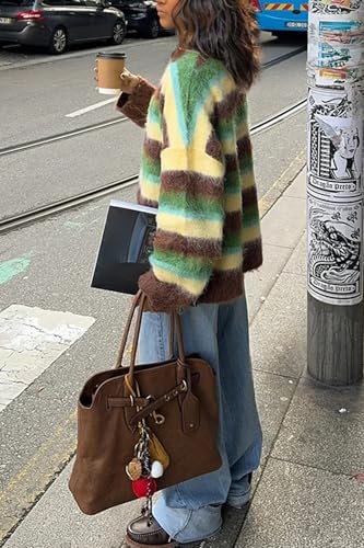 • Feature: This womens sweaters features a pullover. Cardigan sweaters for women with loose long sleeves and a striped color block design. which is a trendy and vintage women's sweaters.