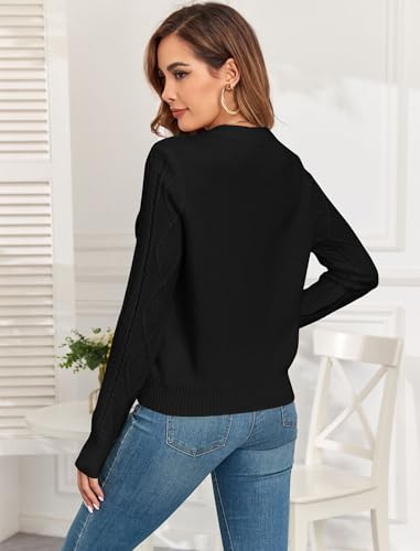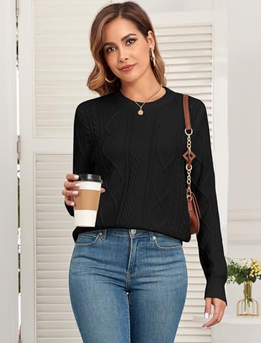 • LONG SLEEVE CABLE PULLOVER:The Knitted Sweater featured with crew neck,casual vintage style,long sleeve,loose fit,solid colors.This Women Fall Sweaters boasts a Unique and Classic Textured Pattern and Exquisite Cable Knit Detail that adds visual interest and exudes an elegant touch,make you more charming.The Ribbed Knit Cuffs And Hem fit your body better and provide good warmth.The Loose Fit Style fits any body type.