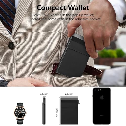 Small Slim Wallet Alloy Business Card Holder for Men, Pop Up Minimalist Metal Card Credit Wallet, RFID Blocking (Blue) 7