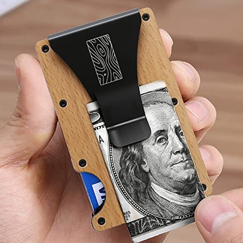 • MINIMALIST FUNCTIONALITY: With gorgeous natural wood color, modern metallic elements and practical money clip, there is plenty of room to fit all your cards. The minimal wallet fits all your necessary cash so that you can make a fashion statement and hold a conversation piece.