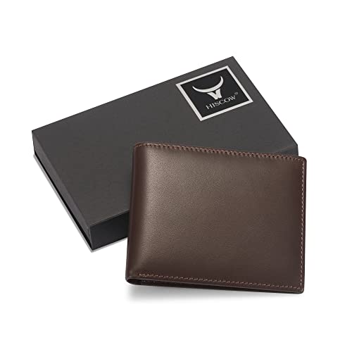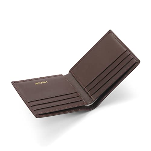 HOT ! HISCOW Leather Slim Bifold Wallet with 6 Credit Card Slots, Italian Calfskin (Coffee)
