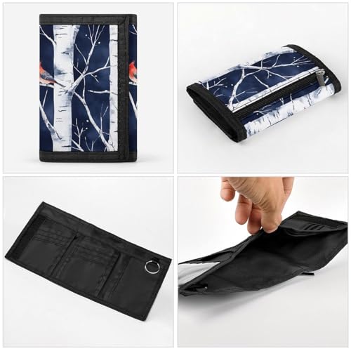 HOT ! Birch Forests Cardinal Birds Trifold Wallet Slim Coin Purse Card Holder with Keychain for Men Women