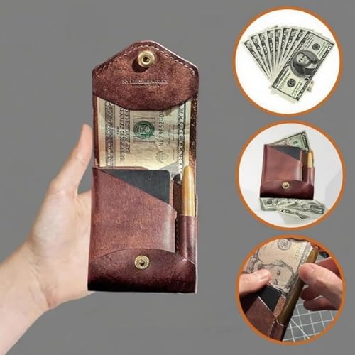Customary Vintage Leather Wallet, Multifunctional Compact Wallet for Men, For Cash Business Card Holder, Built-In Pen Slot, For Daily Commuting, Business, And Travel (Wallet+pen2pcs) 5
