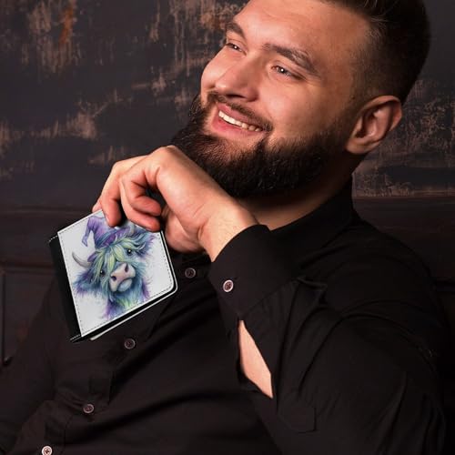 HOT ! Cute Highland Cow Neon Green Soft PU Leather Bifold Wallet, Coin Purse Credit Pass Case, Durable Card-Holder Slim Billfold for Men Woman Money Storage