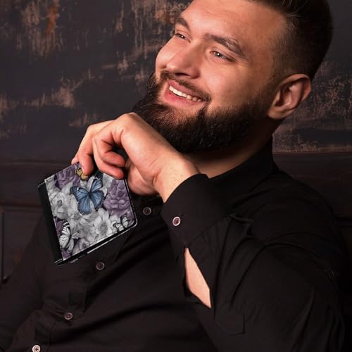 HOT ! Men's Leather Wallet Bifold Wallet for Men Purple Butterflies Floral Slim Wallet with Multiple Card Classic Passcase Mens Card Holder