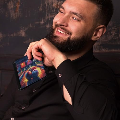 Men's Leather Wallet Bifold Wallet for Men Bowling Balls Slim Wallet with Multiple Card Classic Passcase Mens Card Holder 7