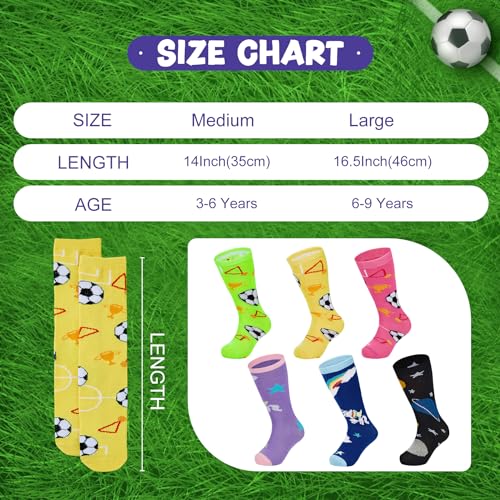 • MATERIAL & SIZE:Kids soccer socks suit for 3-6 Years/6-9 Yeras old children.2 sizes for the kids knee high socks:M(3-6 Years) 35cm=14",L(6-9 Years)42cm=16.5".Please confirm the size chart information and choose the right size before placing an order