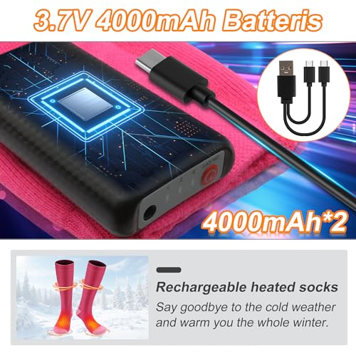 HOT ! MMlove Heated Socks for Girls,3 Heat Settings, 4000mAh Battery, Electric Heated Socks for Teenagers Youth, Rechargeable Foot Warmers, Washable for Skiing,Camping,Snowboarding,Hiking,Cycling